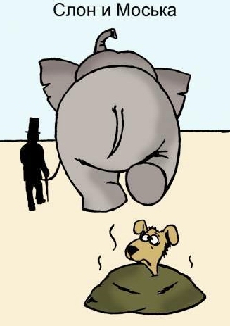 Жила собачка в Подмосковье, Три лапы, хвостик и башка, И самомнение слоновье, А рост всего лишь два вершка. Собачка та любила лаять На всё что видела вокруг. И лапу поднимать, как маятник, Ведь у собачек нету рук. Гуляя как-то по привычке Она искала новых жертв. Ведь заслужить хотела кличку Волкоклыкастыйдлиннохер. И вот, о чудо! Увидала Она на улице слона! Ведь их на улицах так мало! Удача! Потекла слюна! Собачка бросилась в атаку! Ей чудились уже вот-вот…