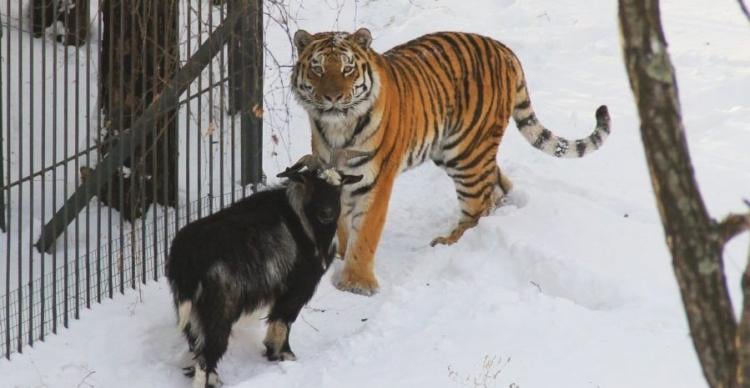 ЧИТАТЬ ТОЛЬКО ЛЮДЯМ С ЧУВСТВОМ ЮМОРА! Реальная история: содержащемуся в Приморском сафари-парке тигру, в качестве «еды» отправили козла. На удивление всем, тигр его не сожрал и, более того, принял его в свой дом на постой. Козёл был довольно борзый, он задирал тигра, нередко прогонял его с лежанки, но последний все это терпеливо сносил. Служители зоопарка за бесстрашие и проявленную доблесть дали козлу имя Тимур. Но не все сказки заканчиваются хэппи-эндом, Тимур, после того, как его отселили от тигра, умер от…