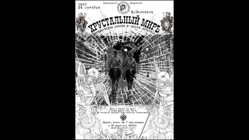 ИСТОЧНИК ВДОХНОВЕНИЯ: https://nice-books.ru/books/proza/sovremennaja-proza/15274-viktor-pelevin-xrustalnyi-mir.html Мне сон привиделся такой — Сказать неловко: Я — Надя Крупская, со мной — Ульянов Вовка. Я, чай, не девочка, — ага, Постарше Вовы, Но мы внедряться в тыл врага Всегда готовы. Разбить Хрустальный Узкий Мир Спешим на Пристань — Там некий Лёва командир У монархистов. С ним в связке старый стукачок — Ехрюшкин Женя. Их троллим я и казачок — Ульянов-Ленин. У модераторов баттхёрт, Психоз, камланья — И вот наш экипаж…