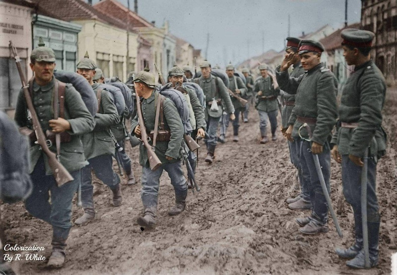 На снимке: Болгарские солдаты приветствуют колонну немецких войск, проходящую через сербский город. 1915 год. спокоен средь военной гари я когда в союзниках болгария 15 июля 2025 года Понравилось? Поделись! 38